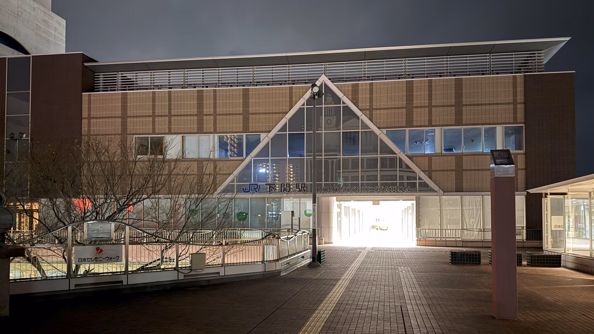 早朝の下関駅。下関駅の東側は多数のショッピングモールがある商業地域ですが、流石に朝の5時台は人の気配がありませんね。
