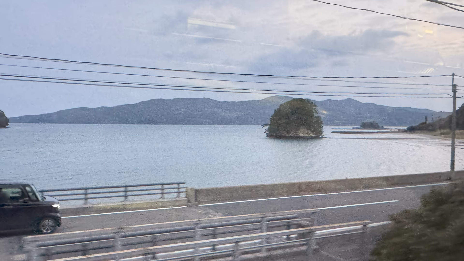 出雲市を出ると、車窓左手は宍道湖になります。寝台列車に乗ったときは反対側かつ真っ暗で何も見えませんでしたが、いい景色が広がっていますね。