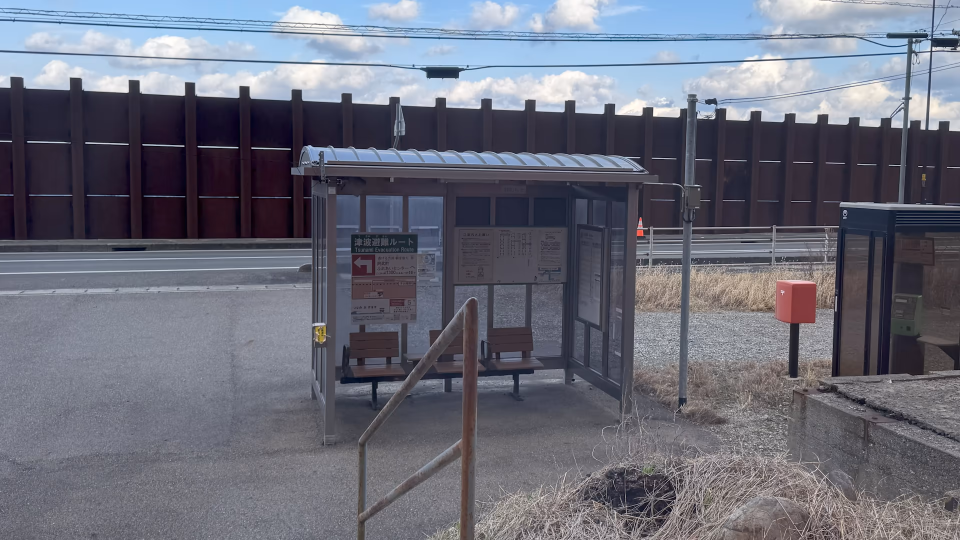 都市部のバス停のような駅舎の宇田郷駅。このあたりは建物がほとんどありません。