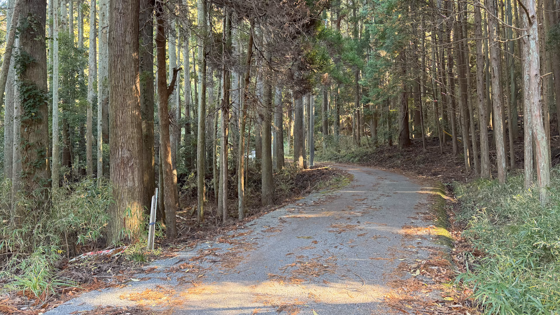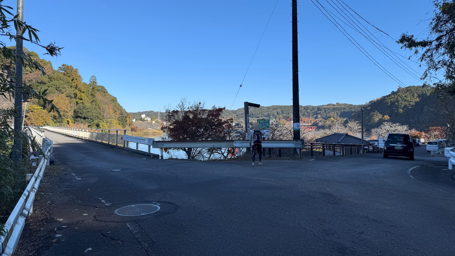 そのまま湖の近くを歩いていきたいところですが、歩行者がどこを通れるかわからないので大人しく一般道を歩きます。今回は西へ進み、亀山湖を時計回りて一周します。