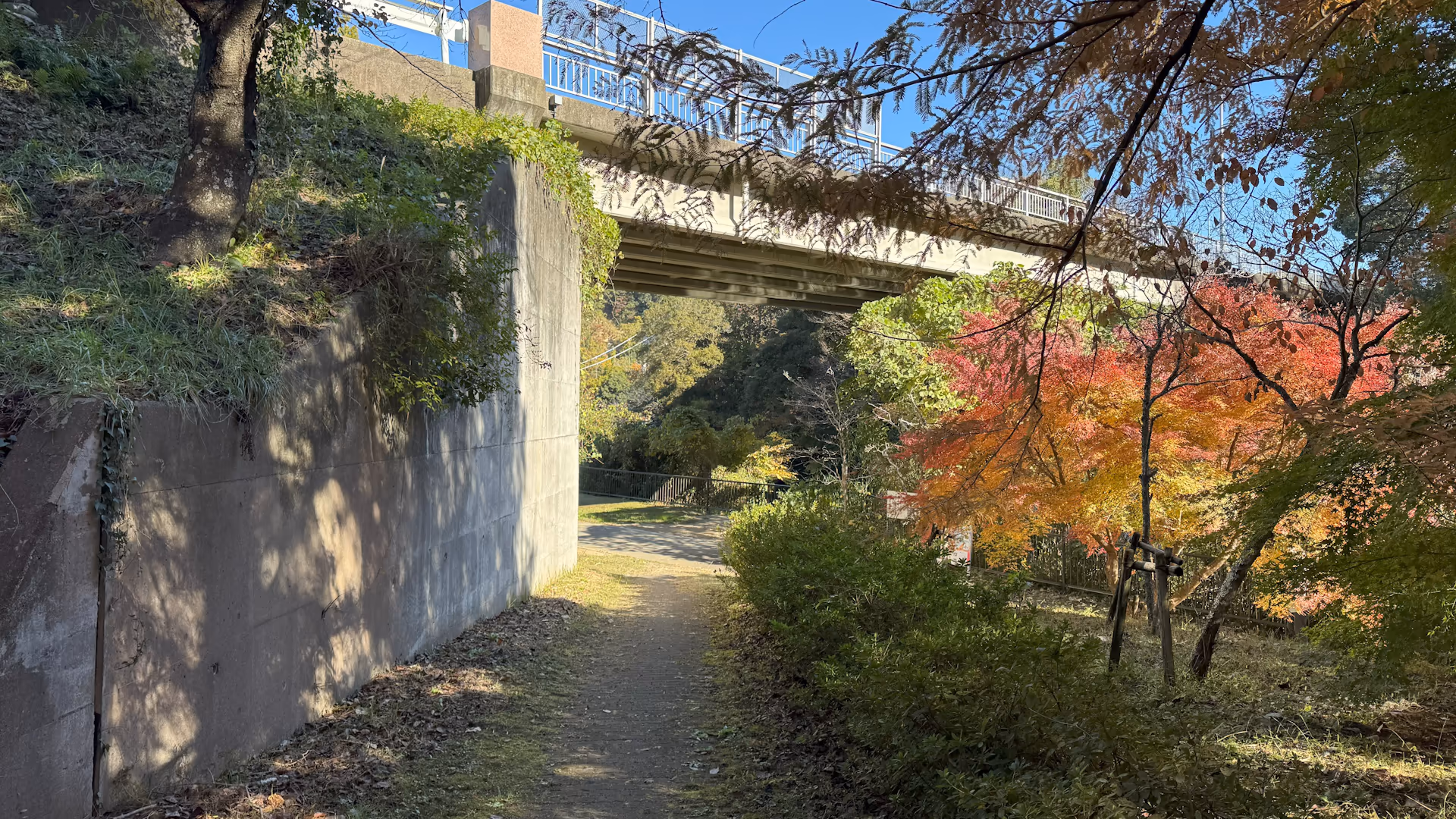 帰りは北回りで駅へ。途中にはトンネルが。結構あちこちにトンネルがあるんですね。こちらは少々距離があるからか、一部照明付きです。