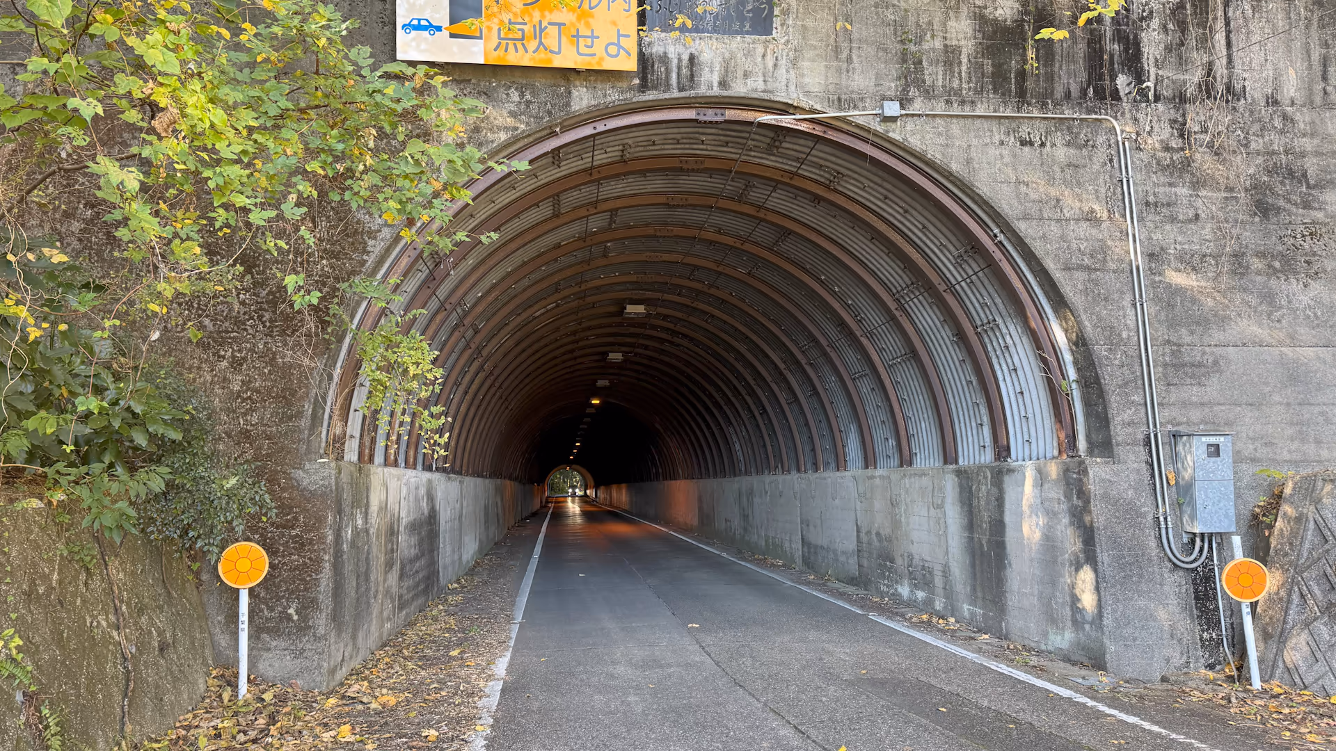 橋の先にはトンネルがあります。照明がなく見た目以上に暗いです。夜は絶対に通りたくないですね。